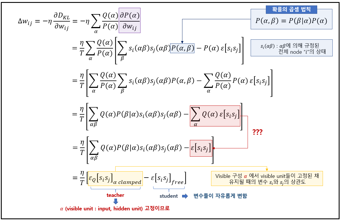 위 식은 즉, input unit이 학습 및 비학습 요소들 모두에서 fix되어 있다는 것이다. 그 결과는 가중치 갱신이 다음과 같다.