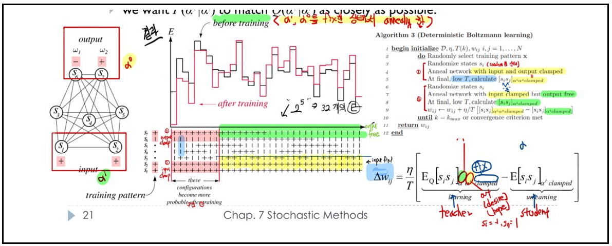 앞 Ch7.2 에서는 $w$가 fix된 상태에서의 최적의 $E$를 찾기 위한 각 unit의 state를 찾는 방법을 다뤘었다. 이번 Ch7.3에서는 적절한 $w$를 찾기 위한 방법을 논하고자 한다.