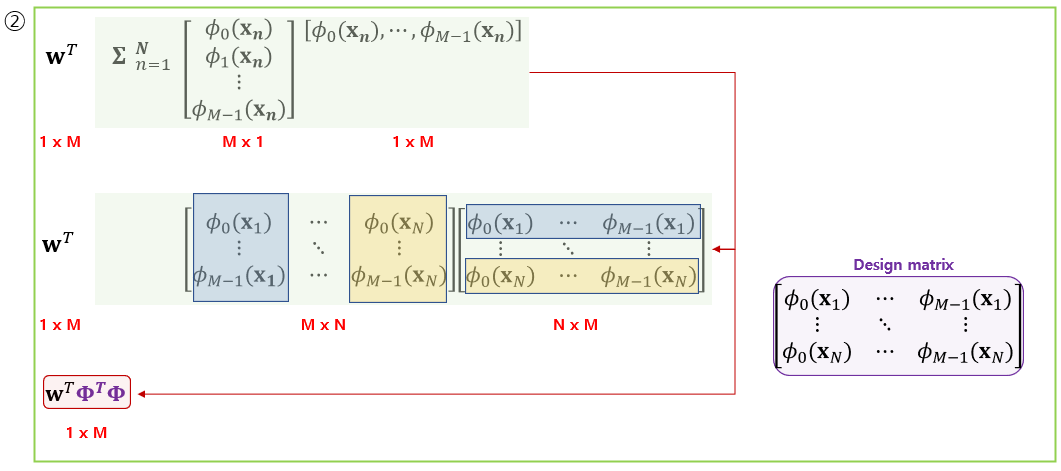 - $y(\mathbf{x}_n, \mathbf{w}) = \mathbf{w}^T\phi(\mathbf{x})$