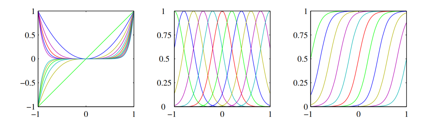 - We can extend the class of model by considering linear combinations of fixed nonlinear functions of input variables using basis functions $\phi_j (\bf{x})$.
