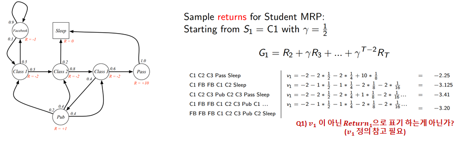 Q1) 위에서 Return을 $v_1$으로 표기하였는데, $G_{1}$ (Return) 라고 해야할것 같습니다.