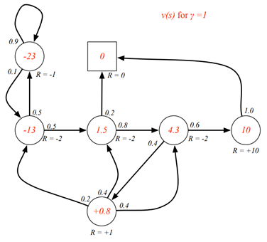 예를 들면, "Class 1"에 있을 때, state transition probability에 의해 0.5의 확률로 "Class 2"로 이동하는 경우, Reward 가 -2이다. (state를 떠날때 reward을 받음)