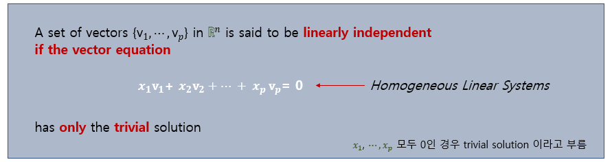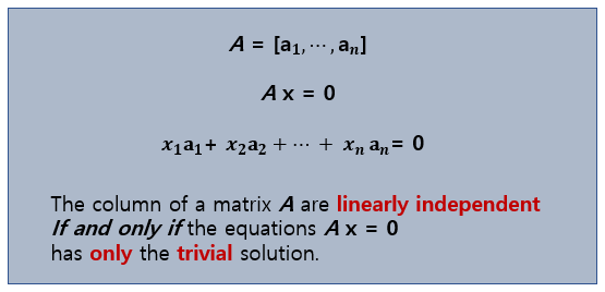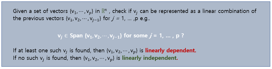 선형 독립의 정의를 명확히 알면 선형 종속의 정의도 쉽게 이해할 수 있다.