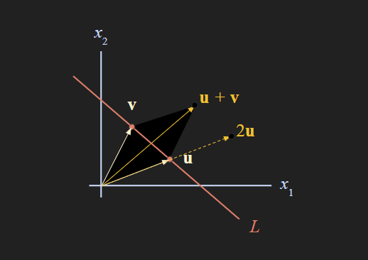 2차원 공간에 있는 직선 L 은 u 와 v 로 이루어진 subspace인가?