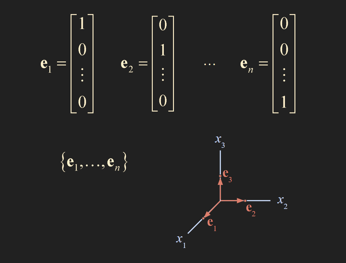 standard basis로 변경된 벡터의 기호는 보통 e로 표기함.