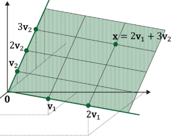 v1과 v2 벡터의 Span은 Linear combination을 한 것이다.